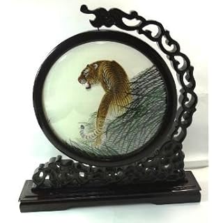 両面刺繍 (虎) たくましい虎の刺繍品 置物 中国手工芸品 ギフト